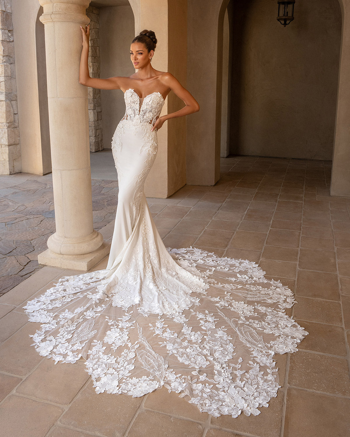 Where sexy meets elegant. Designed to turn heads and capture hearts. Kitty Chen designs unforgettable bridal gowns known for sexy silhouettes, couture-level detail, and modern elegance. Explore signature styles like illusion backs, plunging necklines, long sleeve ball gowns, fully beaded mermaids, romantic French lace, dramatic trains, and breathtaking veils.