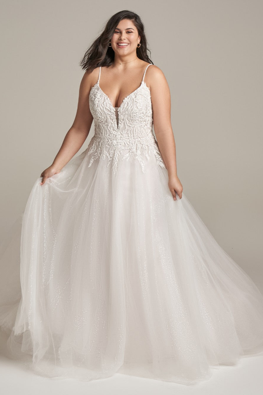 The Barbara Lynette bridal gown features a stunning beaded bodice that adds a touch of glamour to its feminine design. Its flattering A-line silhouette gracefully enhances your figure, making it perfect for a stylish and elegant bride. This gown combines classic charm with modern sophistication for a truly unforgettable wedding look.
