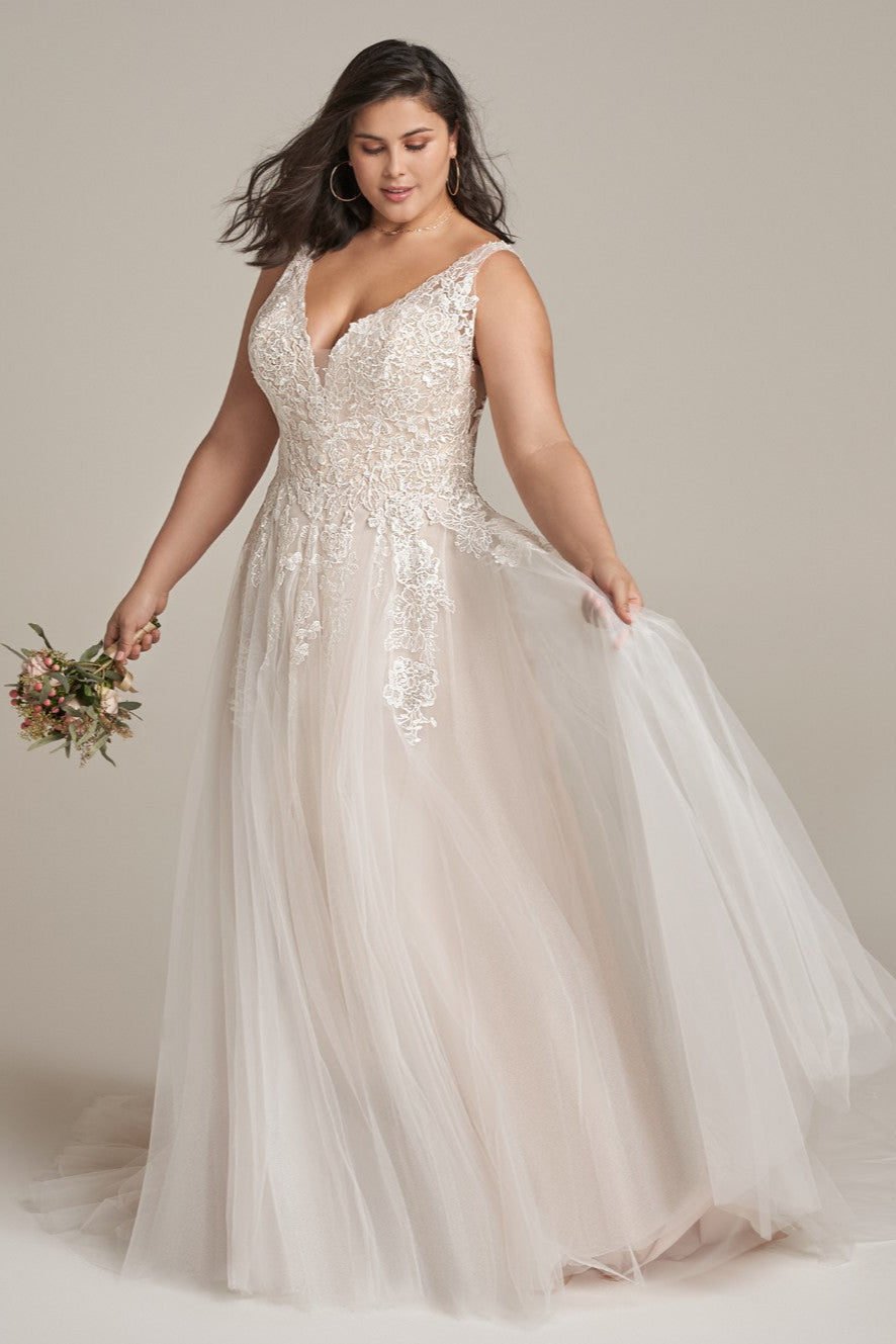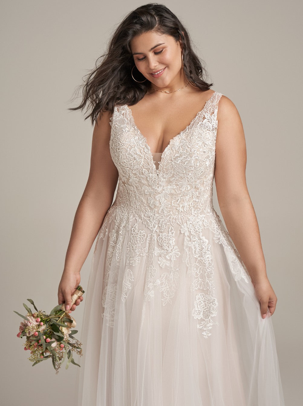 Emily Lynette features sparkling lace that adds a romantic shimmer to its elegant design. Tailored to flatter your silhouette, this fashionable gown creates a timeless and graceful look perfect for your special day.