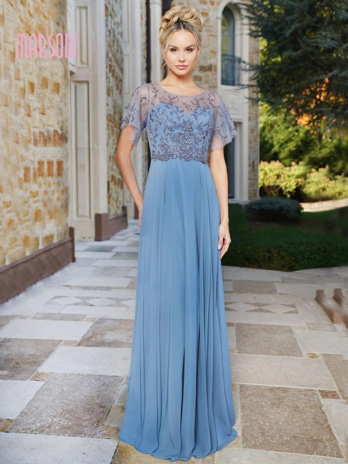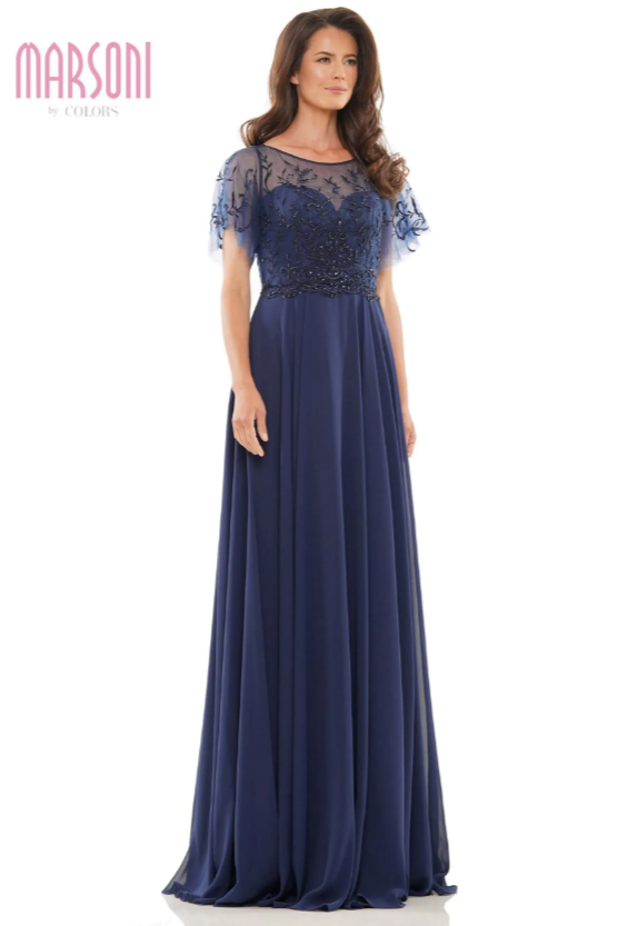 This graceful A-line chiffon dress combines timeless elegance with delicate detail. The bodice is crafted from intricate lace, offering a touch of romance, while soft flutter sleeves add gentle movement. Light, flowing chiffon completes the look, making it an effortless choice for any special occasion.