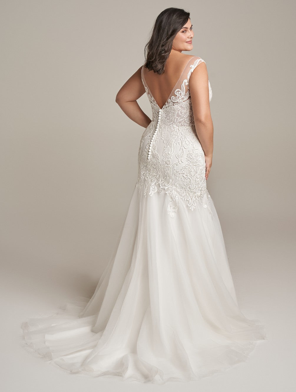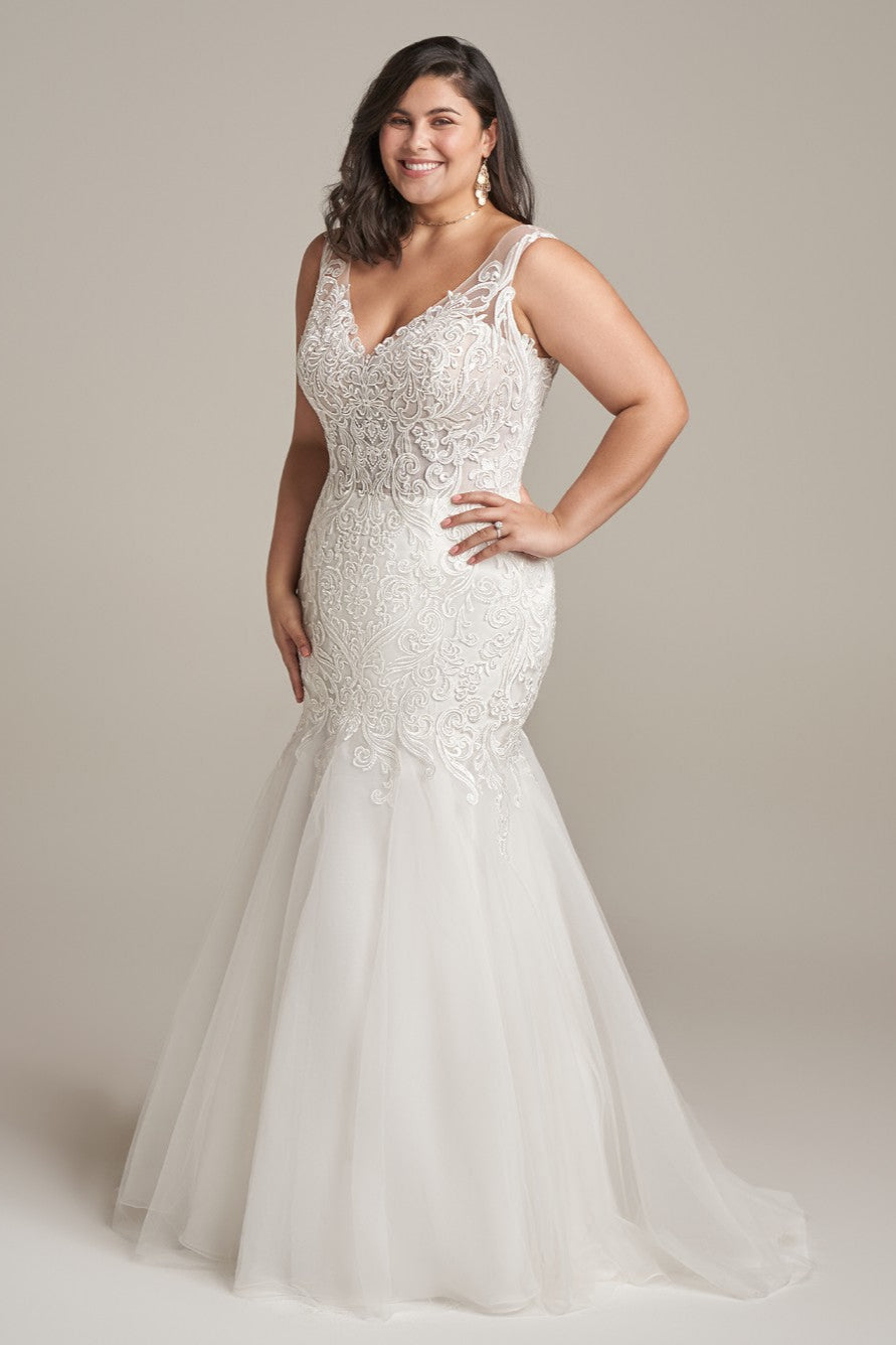 The Silas bridal gown features a sleek mermaid silhouette that gracefully hugs your curves, offering an elegant yet simple design perfect for a modern bride. Its clean lines and refined details create a timeless look that highlights your natural beauty without overwhelming. Ideal for those seeking sophistication with understated charm on their special day.